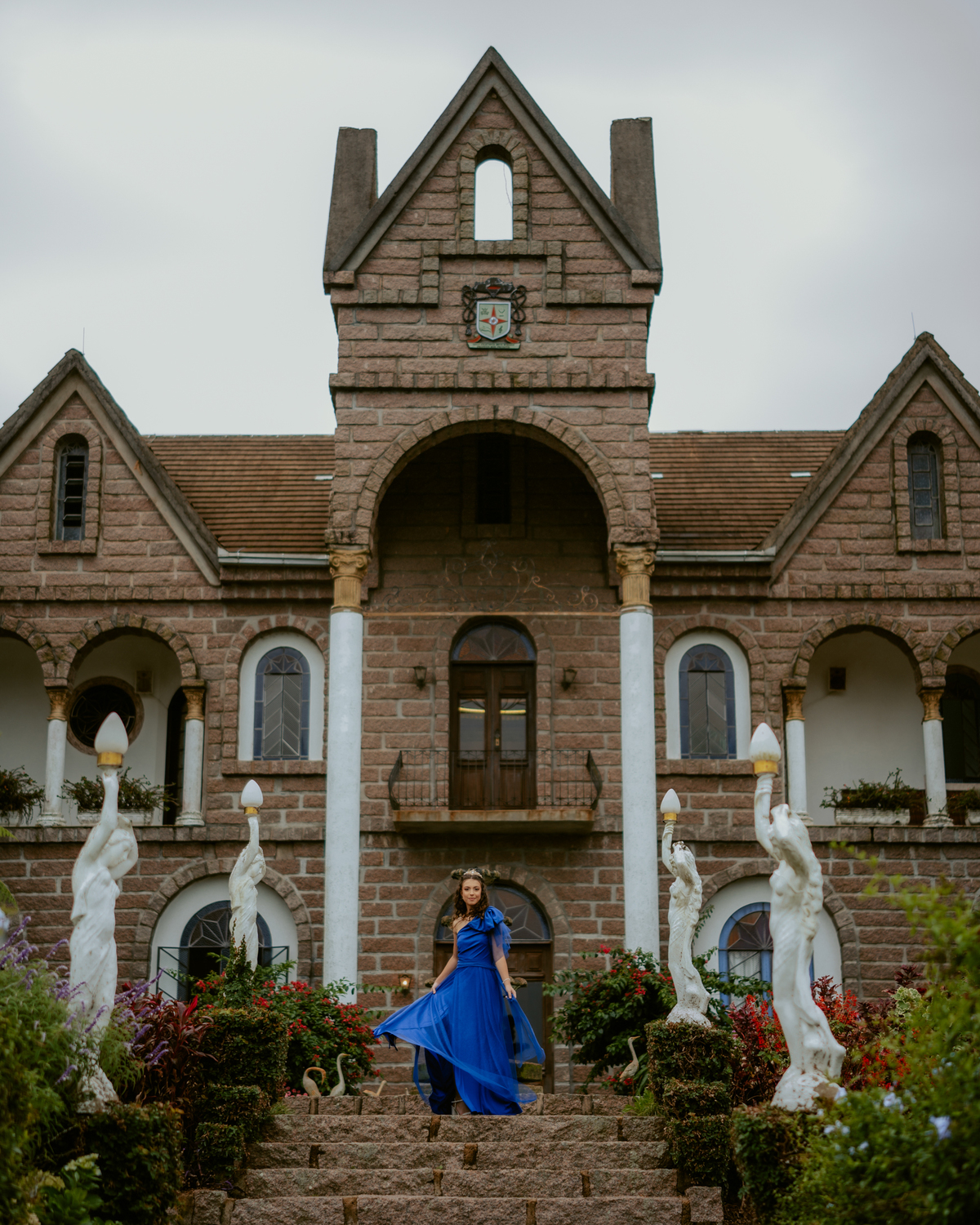 Realizado no encantador Castelo Belvedere, na cidade de 13 de Maio, esse ensaio de debutante trouxe uma estética única, misturando o clássico e o contemporâneo em cada detalhe. Para quem busca inspiração para ensaio de 15 anos em Santa Catarina, esse é o tipo de cenário que transforma qualquer sonho em realidade.